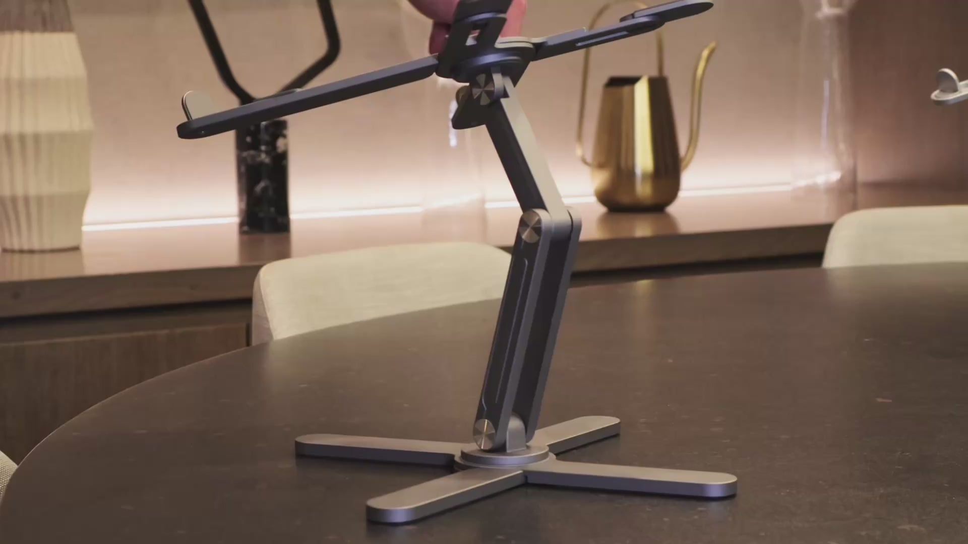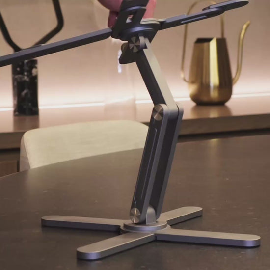 FoldWise Foldable Phone Stand - 100% Aluminum, 360° Rotation, Mobile Phone Holder for Desk, iPhone Stand, Adjustable and Portable - Perfect for Sharing Content - Grey