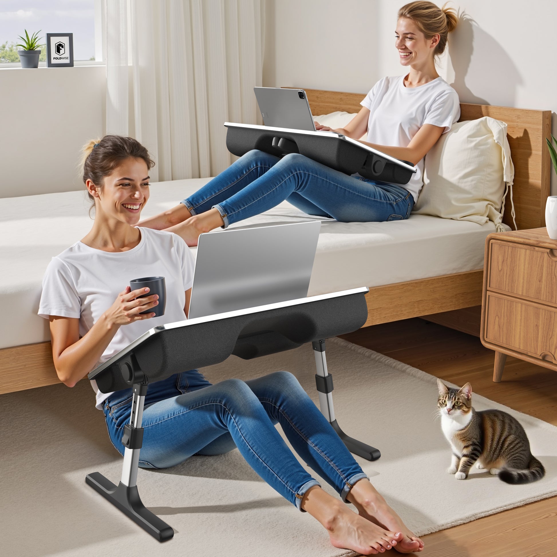 - 【2-in-1 Bed & Lap Desk】- Unique and stylish foldable bed laptop table with four cushions converts seamlessly from a bed tray to a lap desk or a stand for your desk. Whether in bed or on the couch, experience the freedom to work, read, write, or play comfortably from any location.