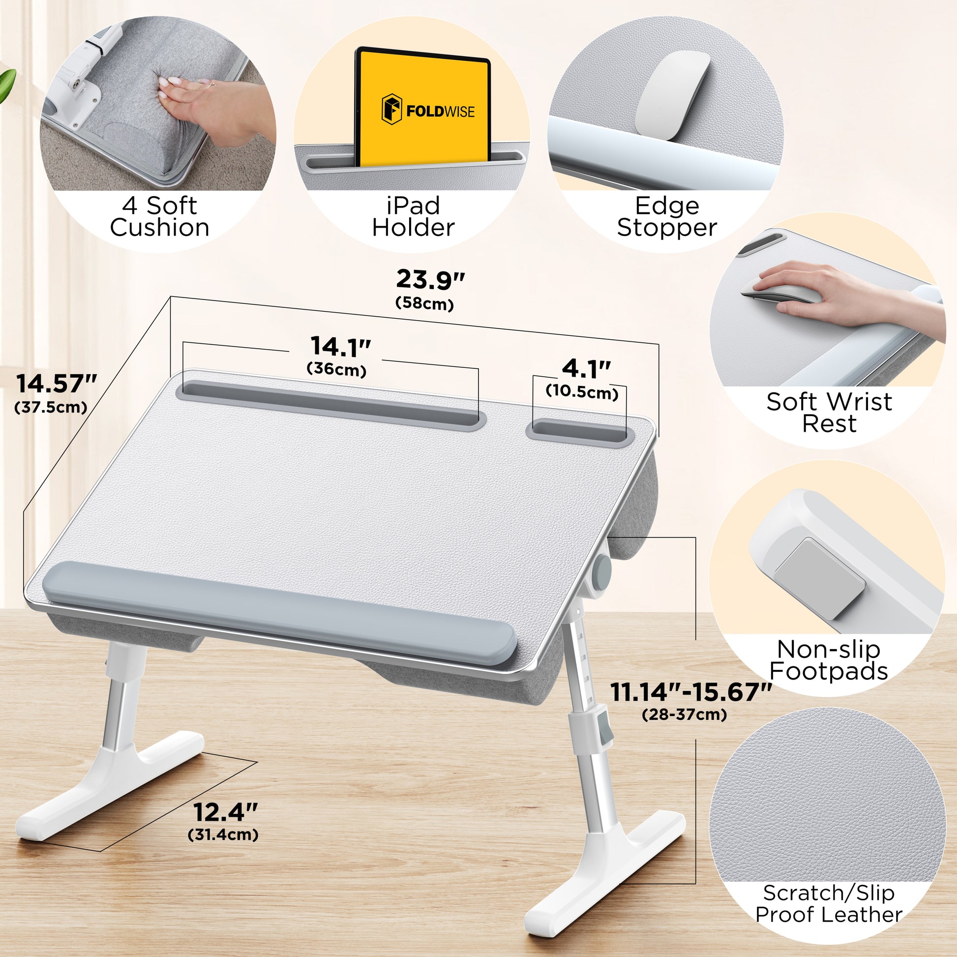 FoldWise 2-in-1 Bed Table & Lap Desk - Soft Cushions, Adjustable Height & Angle, Foldable with Wrist Rest, Tablet Holder, Edge Stopper & Laptop Table Non-Slip Leather, Ideal for Bed Desk, Sofa & Chair