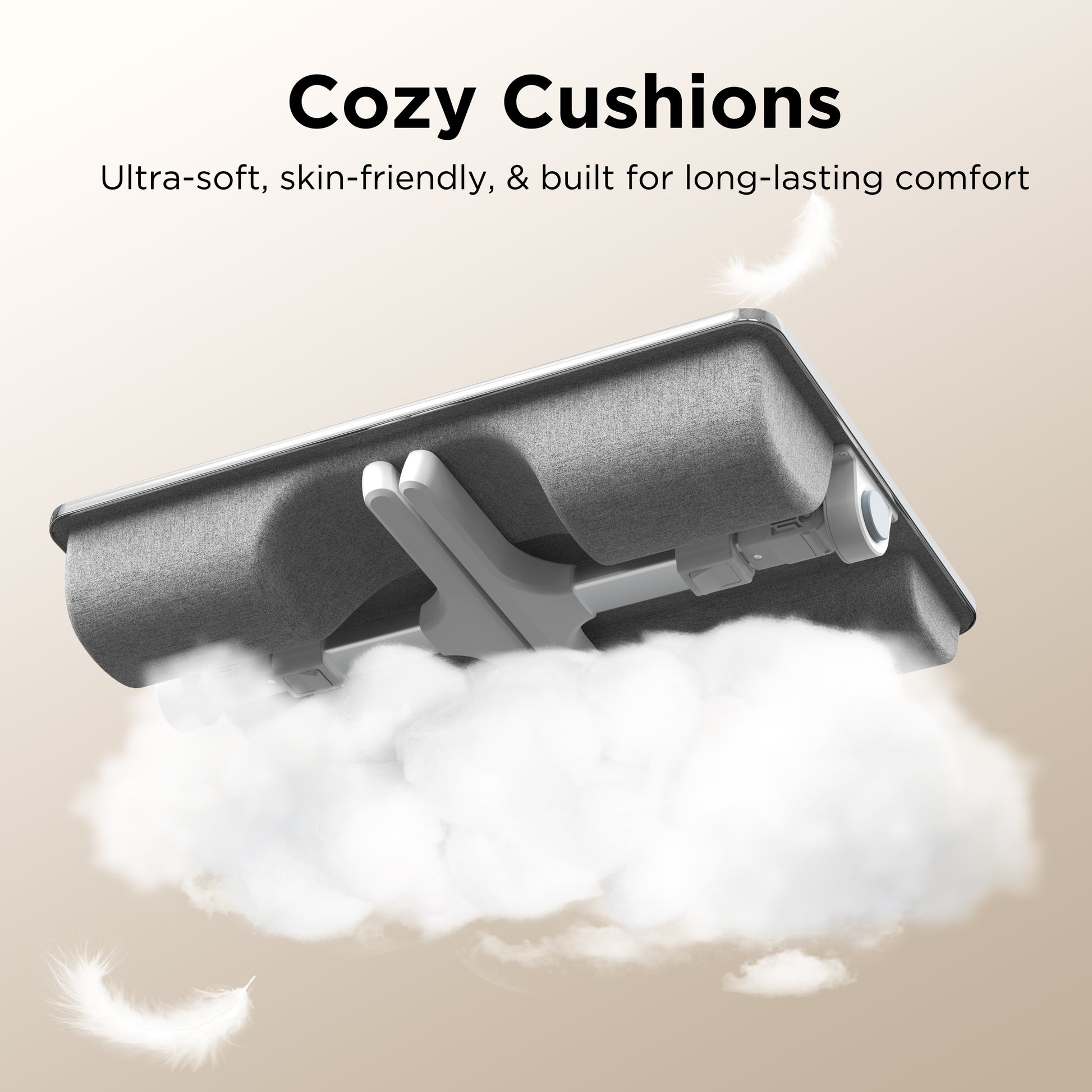 Aiming to maximise your comfort and productivity at home with our innovative bed tray table, designed for those who love the flexibility of working from anywhere—be it bed, sofa, or floor. This laptop lap tray not only adjusts to five different heights 28.3 - 39.8 cm by simply pressing the buttons but also offers a tilting top to reduce neck strain and enhance your viewing angles. The unique four plush cushions make it the perfect laptop tray for your lap, offering unmatched stability and insulation from device heat. This laptop table for sofa provides 51cm of extra legroom, enabling you to place your legs in any comfortable position you desire. Crafted with a luxurious, slip-resistant leather surface, the laptop tray for bed is designed for durability and ease of use. The soft cushions adapt to your lap, providing a stable and comfortable platform while you work or relax. Plus, the clever design includes an edge stopper which also works as a soft wrist rest that prevents wrist fatigue during long sessions. The desktop has a dedicated holder to keep your tablet and phone within easy reach. Foldable for simple storage beside your bed or couch, our laptop tray for sofa is as practical as it is stylish, ensuring your space remains uncluttered. Whether you're enjoying a lazy morning breakfast in bed, reading, or knocking out emails, the FoldWise laptop bed table enhances every moment.